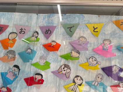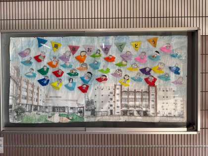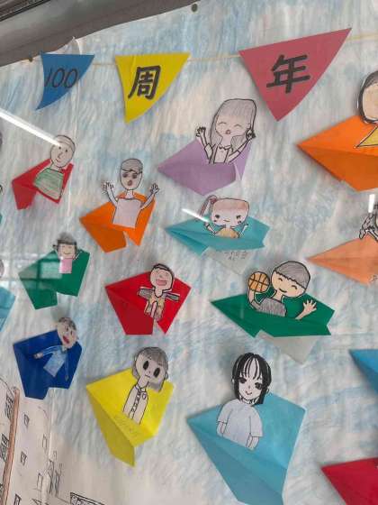 100周年のお祝い掲示になっています。来校の際はご覧ください。