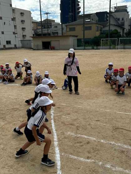 トラックを使って練習を行いました。お友達を応援する態度が素晴らしかったです。