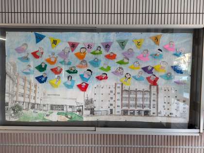 100周年おめでとう。色とりどりの飛行機に乗り、盛大にお祝いしています。