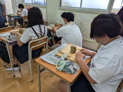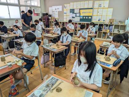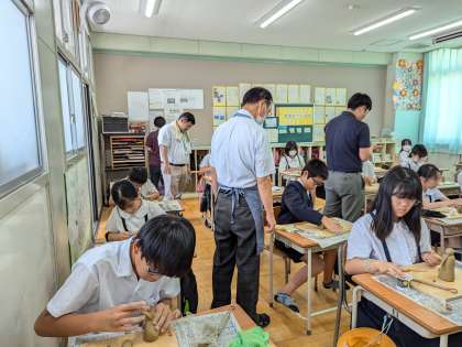 大阪府立近つ飛鳥博物館からゲストティーチャーに来ていただき、はにわづくり体験をしました。