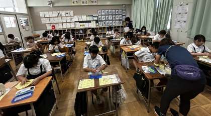森先生が拡大教具を使ってどうすれば上手になみ縫いができるか教えてくださいました。みんなすごい集中力で頑張っています。次回はいよいよ小物作りです!