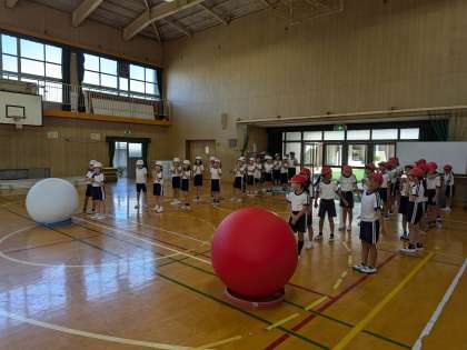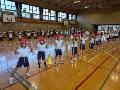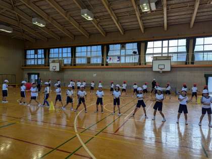 運動会の団体競技の練習をしています。赤も白もどちらも協力して頑張っていました。ダンスもとても上手です。