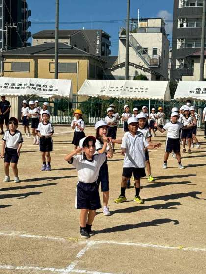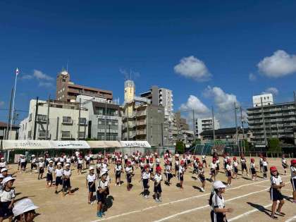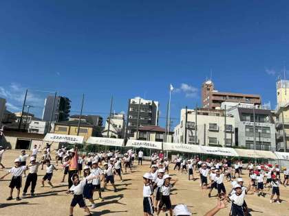 今日は1年生から3年生までが運動場で足速ダンスの練習を行いました。