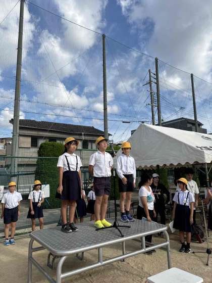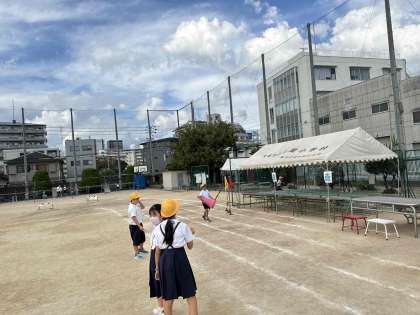 4年生以上の児童が協力して準備をしています。児童会の児童や委員会の児童はその傍らで開閉会式の練習や放送の練習をしました。