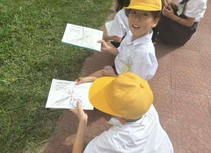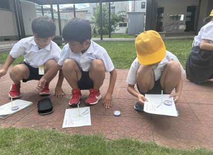 1日に何度もかげと太陽の位置を確認して記録しました。