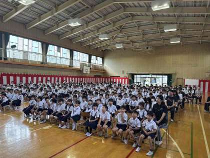 会場の準備を整えて、全学年が入りリハーサルを行いました。低学年中学年は元気いっぱいの歌声を講堂に響かせていました。今回6年生はひな壇で呼びかけを行いますが、卒業式かと思うほど立派な態度に感心しました。5年生はそんな6年生を対面で見ながら頑張っていました。本番は土曜日です。練習の成果を発揮しつつ、全員で100周年のお祝いができればと思います。