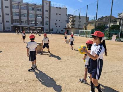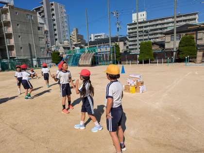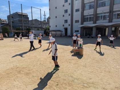 ボール投げゲームで、ダンボールで的を作って投げて当てる学習です。どうすれば真っ直ぐ投げれるようになるのか?どうすればガードをよけることができるのか?自分たちで考えながらどんどん上達しています。