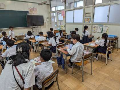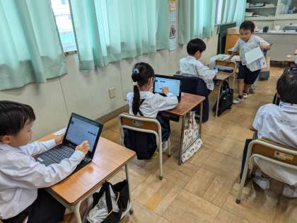 火曜日はチャレンジタイムでデジタル教材のナビマに取り組みます。国語の問題を解いたり、漢字の練習をしたり、難しいことにチャレンジしています。頑張れ低学年!