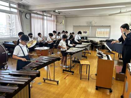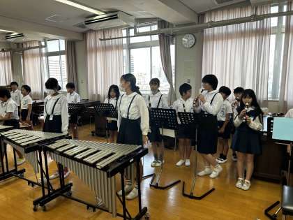 音楽室から迫力のある合奏が聞こえてきました。音楽室をのぞいてみると、演奏する曲を全員で合わせていました。みんなで息を合わせて一つの音楽に仕上がっており、心に響くものでした。これから学習発表会に向けて新しい楽曲が始まりますが、とても楽しみです。