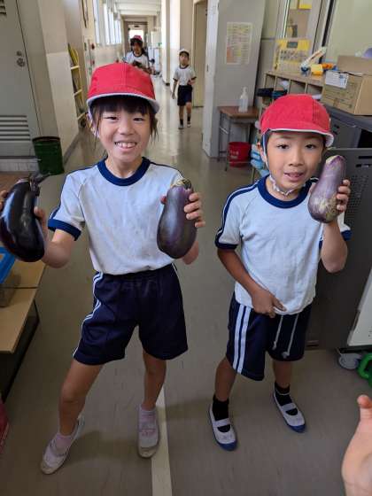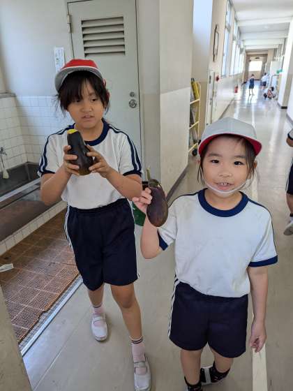ナスがこんなに大きくなりました。水やりも頑張って続けました!