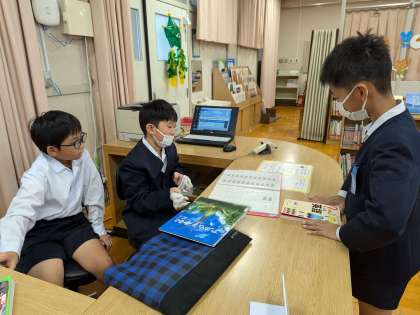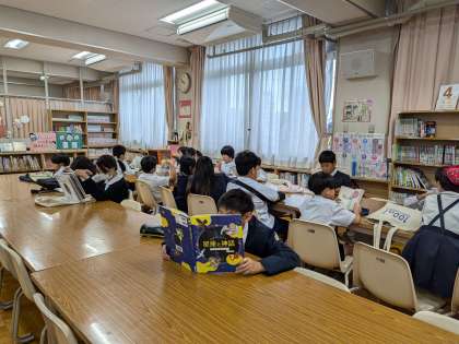 図書係が本の貸し出しについてとりまとめています。姿勢良く本を読むことが重要です。
