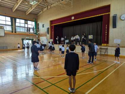 じゃんけん列車のルール守って、楽しく遊ぶことができました。6年生が修学旅行で、不在の中、5年生が頑張っています。