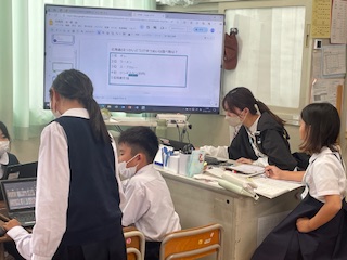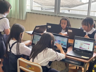 自分の選んだ都道府県のことを調べて、1人1台端末の発表ノートにまとめています。難しいけど、頑張ってます。