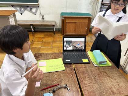 5年生の国語では、「和の文化を発信しよう」という学習を進めています。今日は、一人ひとりが調べた「和の文化」の発表会です。「和の文化を受けつぐ」で学んだ「表現の工夫」や「内容の理解」、「「受けつぐ」ことの考え」たことを生かして発表しています。学習発表会では、「和の文化」を通して学んだことを体を使って表現していきます。楽しみにしていてください。