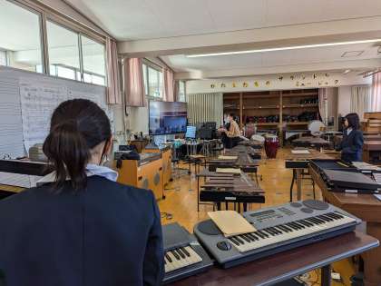 合奏のパート別練習で休み時間も頑張っています。練習あるのみ。頑張れ!
