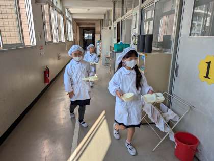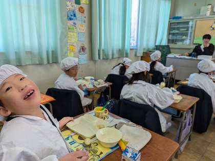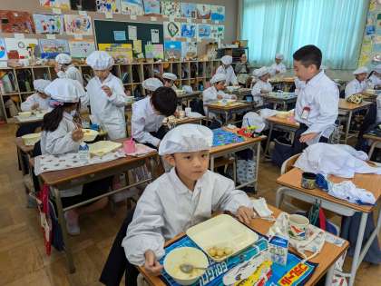 残さず美味しくいただきます。今日は団子がデザートです。最後に食べる人がたくさんいました。