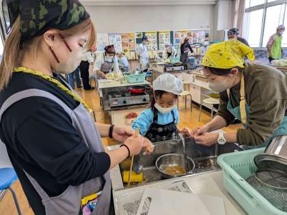 クッキングを通して、親子のふれあいや地域の触れ合いを大切に育んでいます。食育に力を入れている柏里小学校ならではの取り組みです。ご協力ありがとうございました。