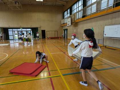 片付けする時に、けがをすることもあります。マットを運ぶ時なスピードにも気をつけます。