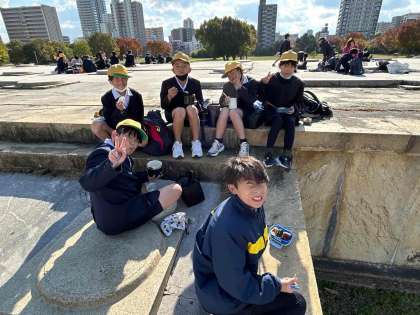難波宮の大極殿跡でお弁当を食べました。風は強めでしたが、天気は良いので気持ちよかったです。朝早くからのお弁当づくりありがとうございました。