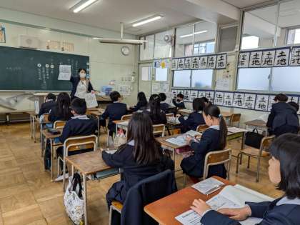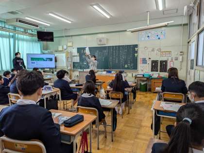 提出物の確認をしています。歯磨きカレンダーの感想が書けているかどうか話をしていました。