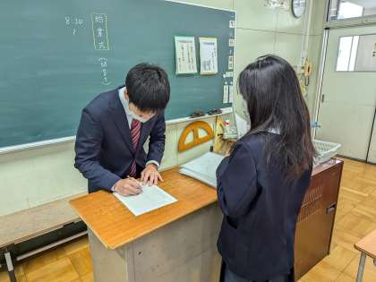 提出物の確認をしています。学年だよりのスケジュールを確認しています。体調を崩さないよう、万全に整えて今後の行事に取り組んでほしいです。