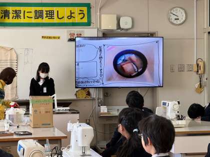 冬休みにおみそ汁を作った経験を、それぞれ発表している様子です。この発表を通して、おみそ汁は作る人によってさまざまな味や具材の組み合わせがあり