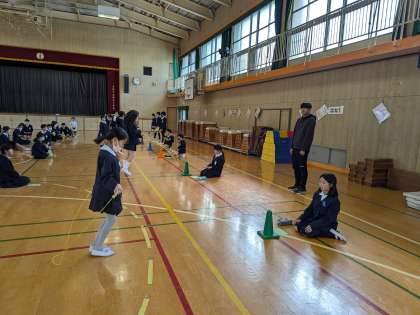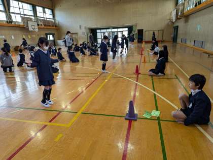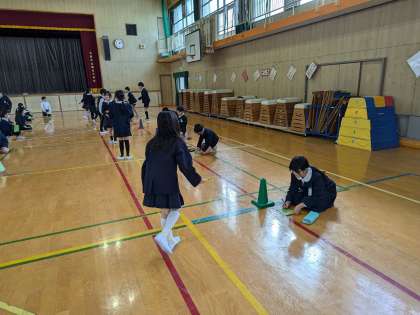 4年生は後ろとびに挑戦します。高速後ろ跳びにチャレンジし、30秒間で100回を越える記録を出した人もいます。これからもいろいろな跳び方やスピードを上げる跳び方など、いろいろな跳び方に挑戦しましょう。