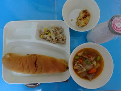 豚肉と野菜のケチャップ煮 ツナとキャベツのソテー もものクラフティー