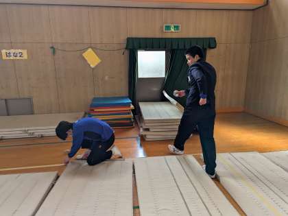 マットの補修を中学生が協力してくれました。