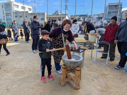 地域の皆様を中心に、餅つき大会が開催されました。柏里小学校の児童も多く参加していました。餅つきという日本の文化に触れることができました。