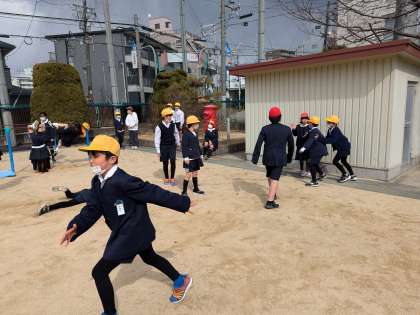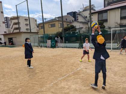 バレーボールをして遊んだり、だるまさんが転んだして遊んだり、運動場の寒さを吹き飛ばすほど明るく過ごしています。