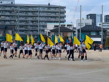 6年生の学習参観がありました。感謝の気持ちを込めてフラッグに気持ちを込めて演技します。