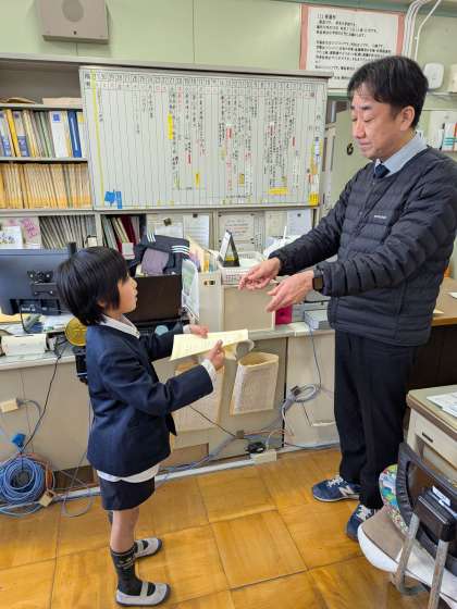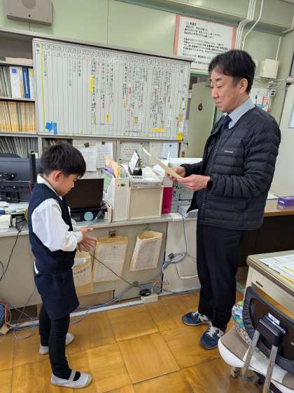 校長先生の九九チャレンジに合格し、賞状をいただきました。3年生になっても頑張ってほしいです。