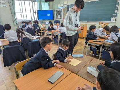 学校のにある教室をできるだけ探してプリントに書いています。