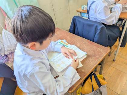 算数の教科書の後ろのページにある付録を使って学習を進めます。