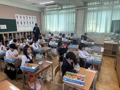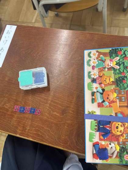 いくつといくつ?という学習を行っています。5はいくつといくつかな?という問題に一生懸命考えて発表しています。