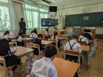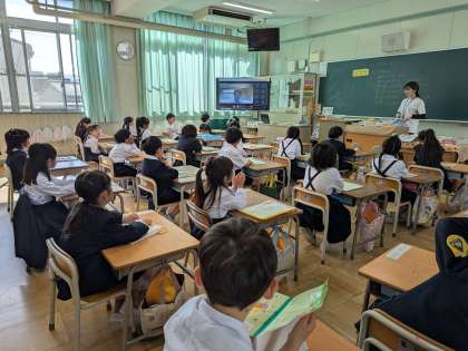 モニターでの校長先生のあいさつにもしっかり礼ができています。1年生のできることがどんどん増えてきています。学校生活にも少しずつ慣れてきたようです。