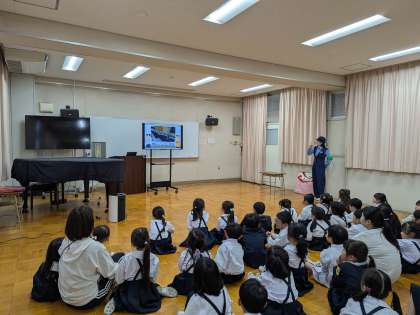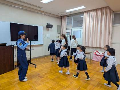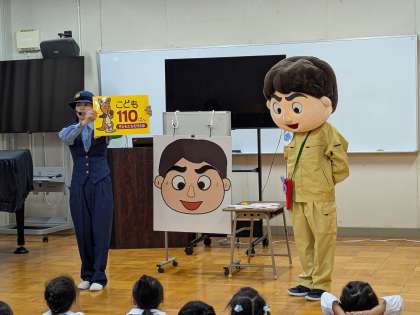 大阪府警本庁より、生活安全課の指導班の方に来ていただき、誘拐防止について学習しました。1年生は集中して話を聞いていました。