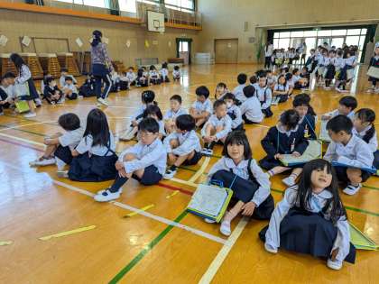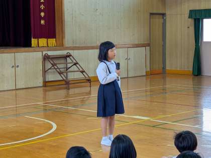 2年生が、校内の教室をていねいに案内します。4階まで上る機会はあまりないので、どきどきしますが、しっかり教室の場所を覚えてほしいです。