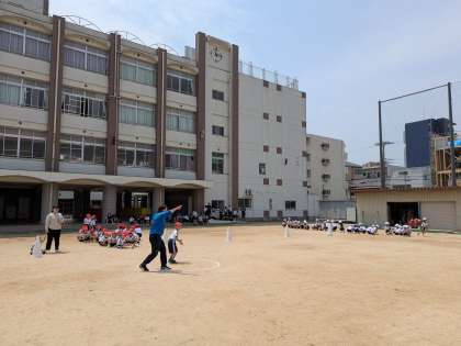 運動場の種目を練習しました。本番は、6年生がサポートします。走る、跳ぶ、投げる、どんどん体を動かしてたくさん遊んで動きに慣れていきましょう。