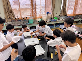 ヒトは何を体の中に取り入れ、何を出しているのか予想を立ててから、気体検知管と石灰水を使って調べました。