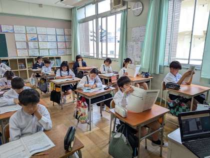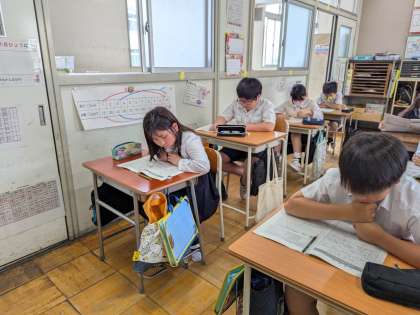 総合的読解力育成の授業です。文章から情報を読み取り、自分で考えたことを交流し、考えを広げ表現する、発表するということをそれぞれのテーマを元に考えていきます。
