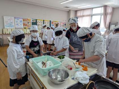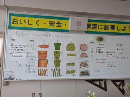 ハム入り野菜炒め、どんな炒め加減が良いでしょうか?味はどうでしょうか?完成が楽しみです。ケガのないように安全に気をつけて調理しましょう。
