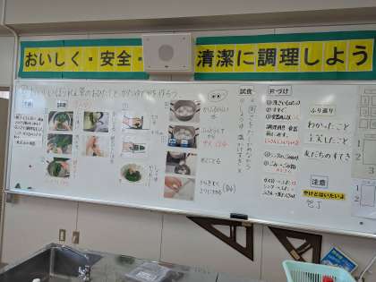 とてもおいしく出来上がりました。ぜひ学習したことを生活の中で生かしてほしいです。ゆで卵、ほうれん草のおひたし、どちらも上手に調理できました。