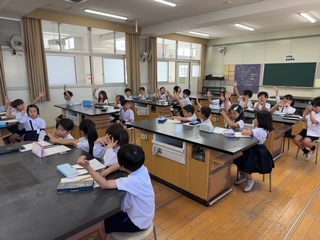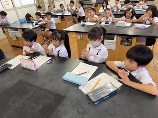 手洗い指導をしていただきました。まずは、コットンで自分の手の汚れを拭いています。