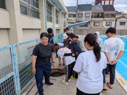 プール学習のための設備の点検をしています。安全にプール学習を行えるように事前の準備からていねいに取り組みたいと思います。