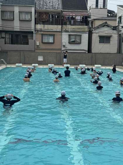 今年度のプール開きトップバッターとして4年生が入水しました。プールの入水基準はクリアしていましたが、やはりまだまだ水は冷たかったですが、子どもたちは久しぶりの水の感触を楽しんでいました。