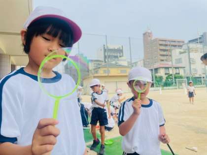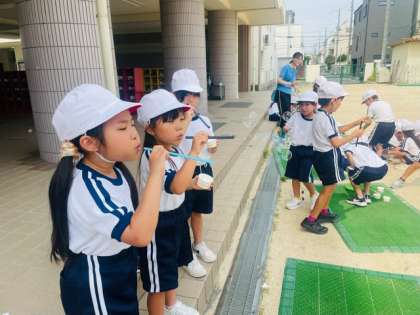 夏のあそびでしゃぼん玉を楽しみました。