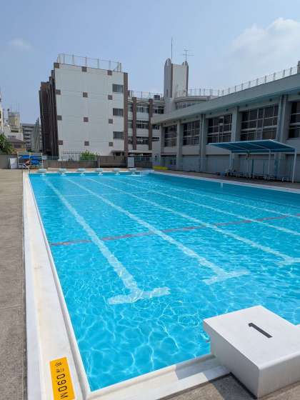 運動委員会の児童と先生たちでプール清掃をしました。きれいな水でプール学習を後半が始められます。
