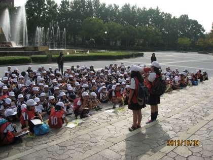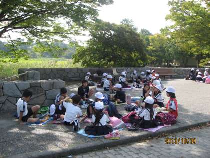 昨日は、服部緑地公園にオリエンテーリングに行きました。道には柿がなっていたり、ドングリや落ち葉がたくさんおちていたりと秋の景色でしたが、昨日はとても暖かく、半袖で活動する子も多かったです。1年生から6年生までが協力してポイントでのゲームに取り組み、みんなが楽しんで活動する姿が見られました。お弁当も縦割り班で食べました。さて、どこの班が優勝するでしょうか?後日、児童集会で優勝チームが発表されます。